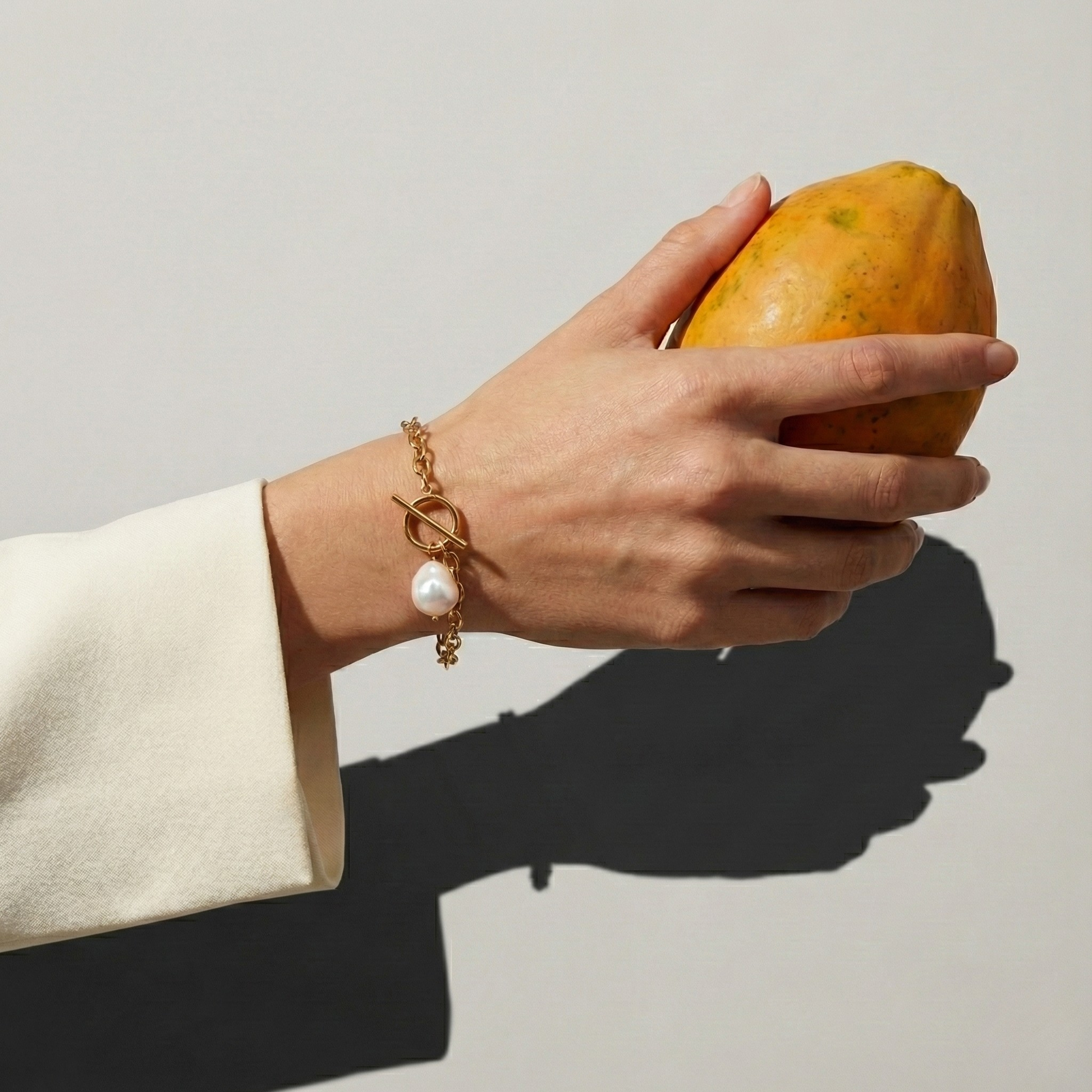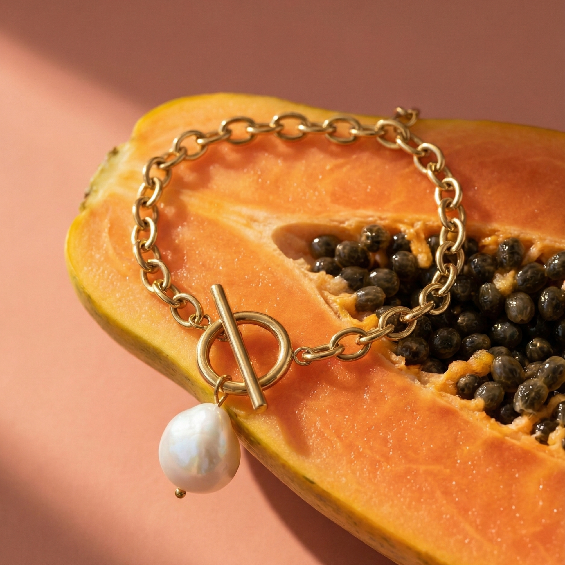 Delikatny złoty łańcuszek z naturalną perłą słodkowodną to kwintesencja elegancji i stylu. Perła, symbol czystości i harmonii, pięknie komponuje się z subtelnym blaskiem złota. Regulowane zapięcie na karabińczyk sprawia, że bransoletka idealnie dopasuje się do nadgarstka, dodając uroku każdej stylizacji.
