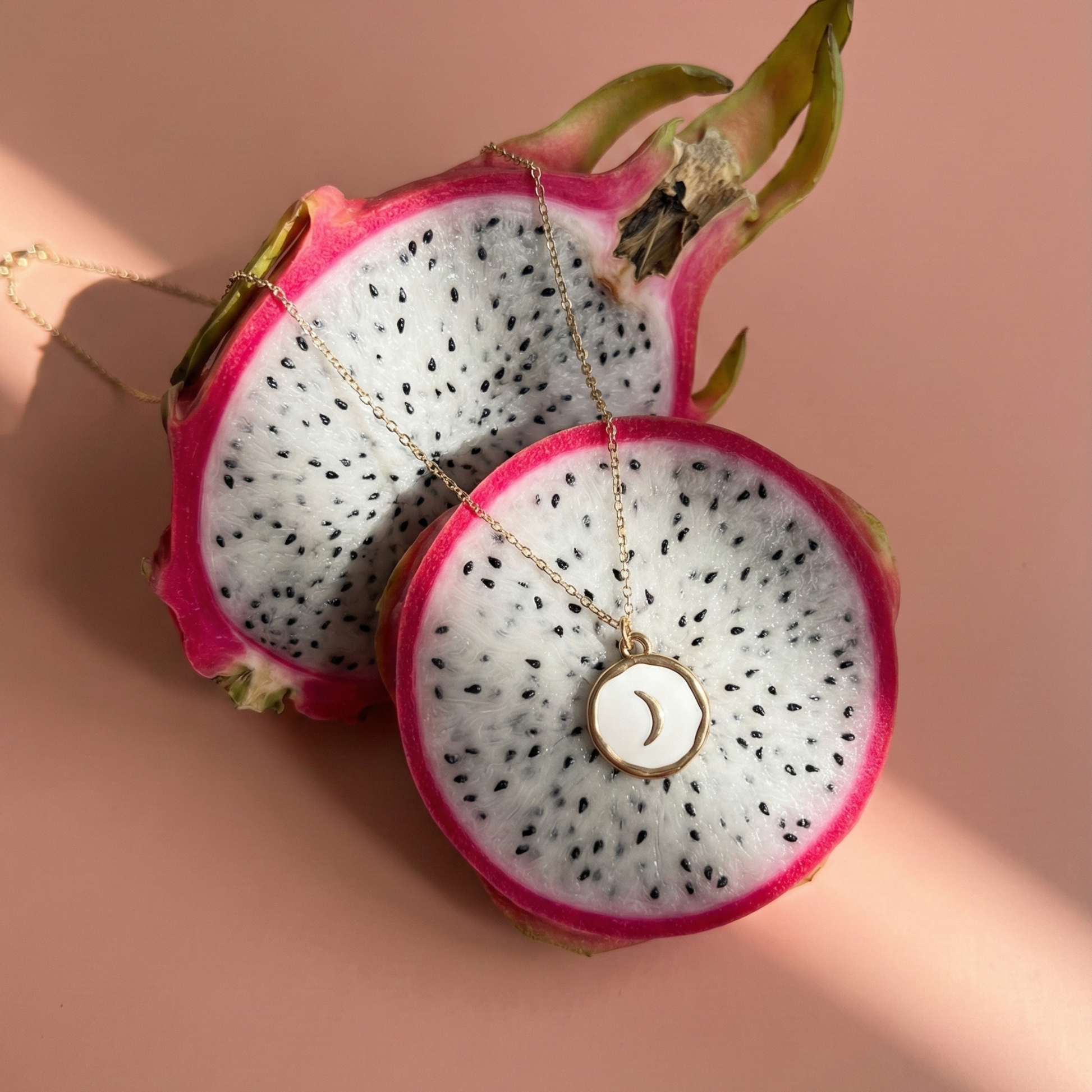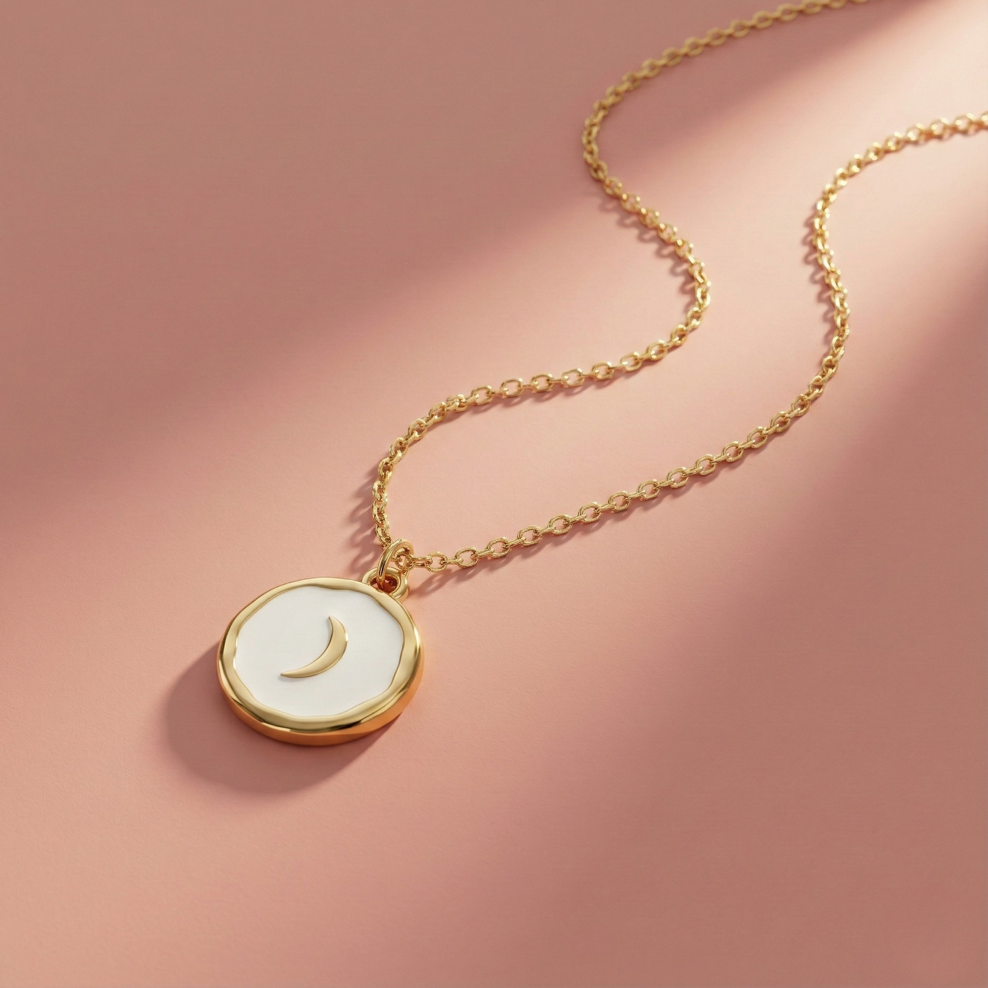 Biała emalia symbolizuje czystość i świeżość, a motyw księżyca dodaje nuty tajemnicy. Naszyjnik to idealna propozycja dla miłośniczek oraz miłośników subtelnej biżuterii z charakterem, lekko mistycznej. Drobny łańcuszek i regulowane zapięcie na karabińczyk to gwarancja komfortu. Dostępny również w wersji czarnej.