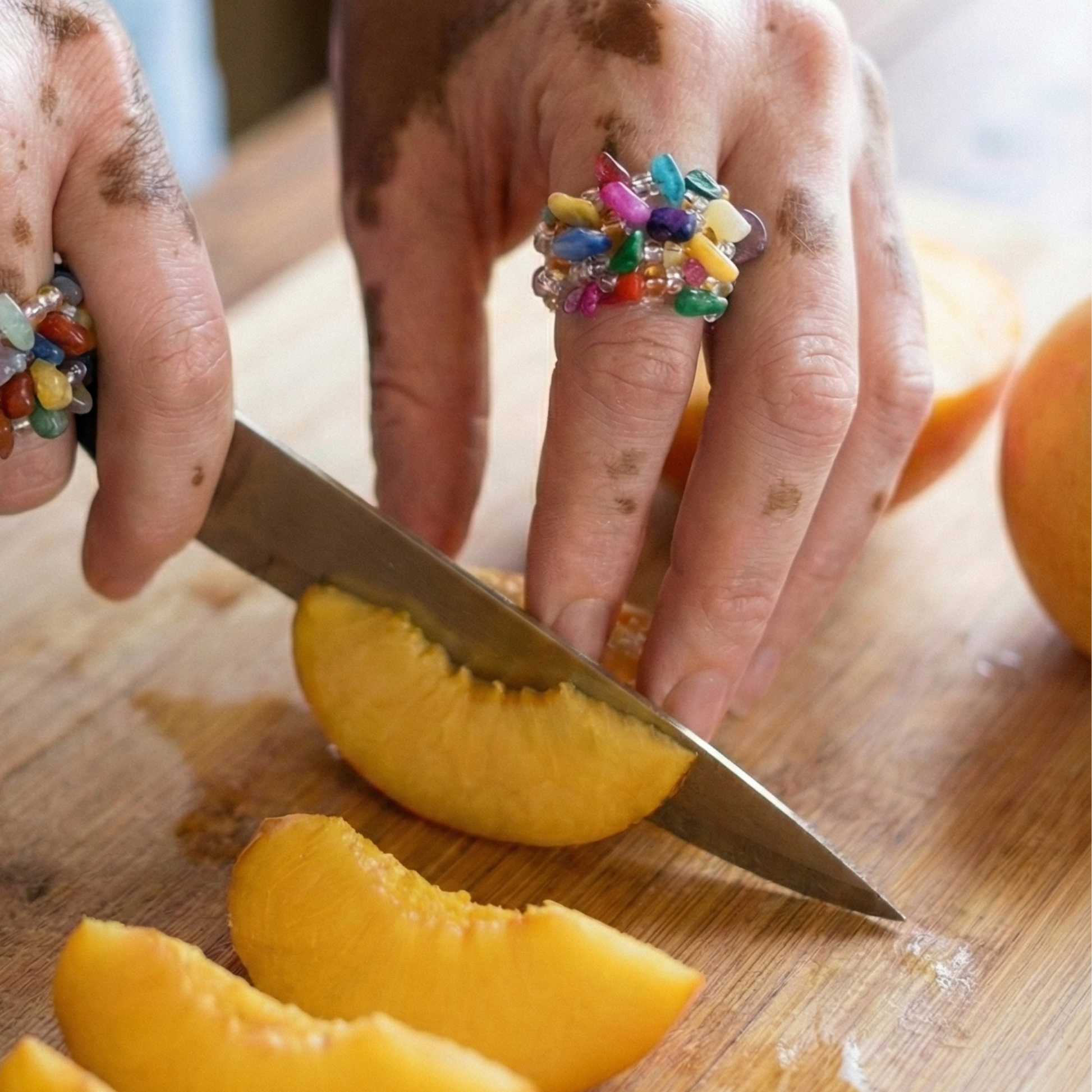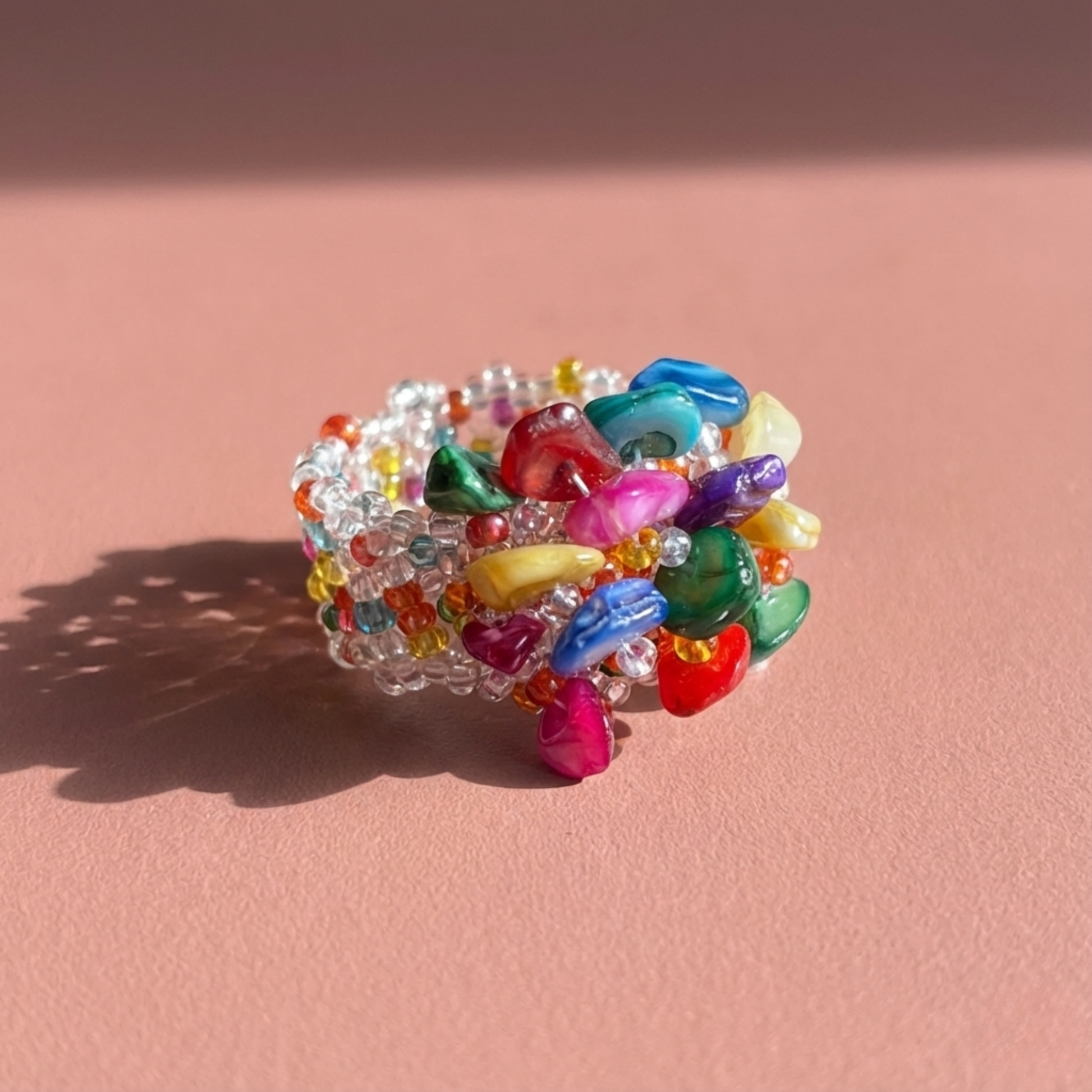 Pierścionek z kolorowymi kamieniami z masy perłowej to subtelna elegancja, która emanuje naturalnym blaskiem. Elastyczna gumka sprawia, że pierścionek komfortowo dopasowuje się do każdego palca. Więc chodź pomaluj swój świat!